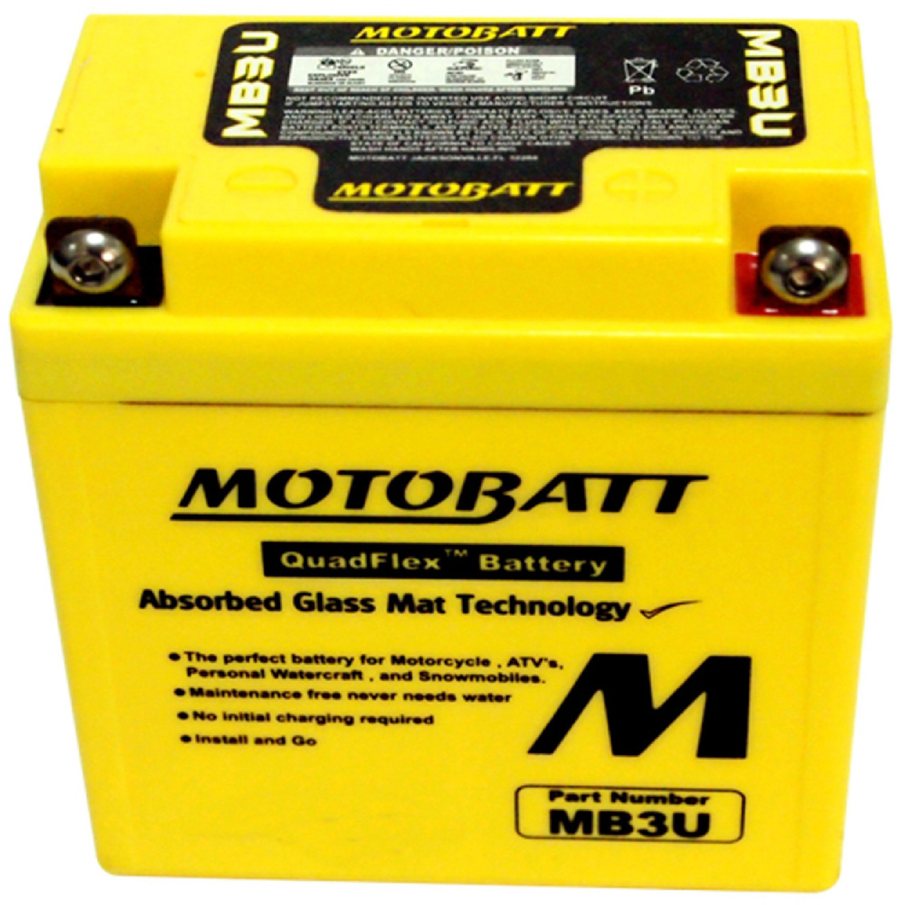 Powersports enthusiasts are all about get-up-and-go action! Motobatt batteries exemplify the powersports lifestyle. Simply install and go. Motobatt batteries without any initial cranking required. Once installed, you don't have to worry about acid leaks or spills because Motobatt batteries come sealed from the factory. You never have to fill or top-off a Motobatt battery.