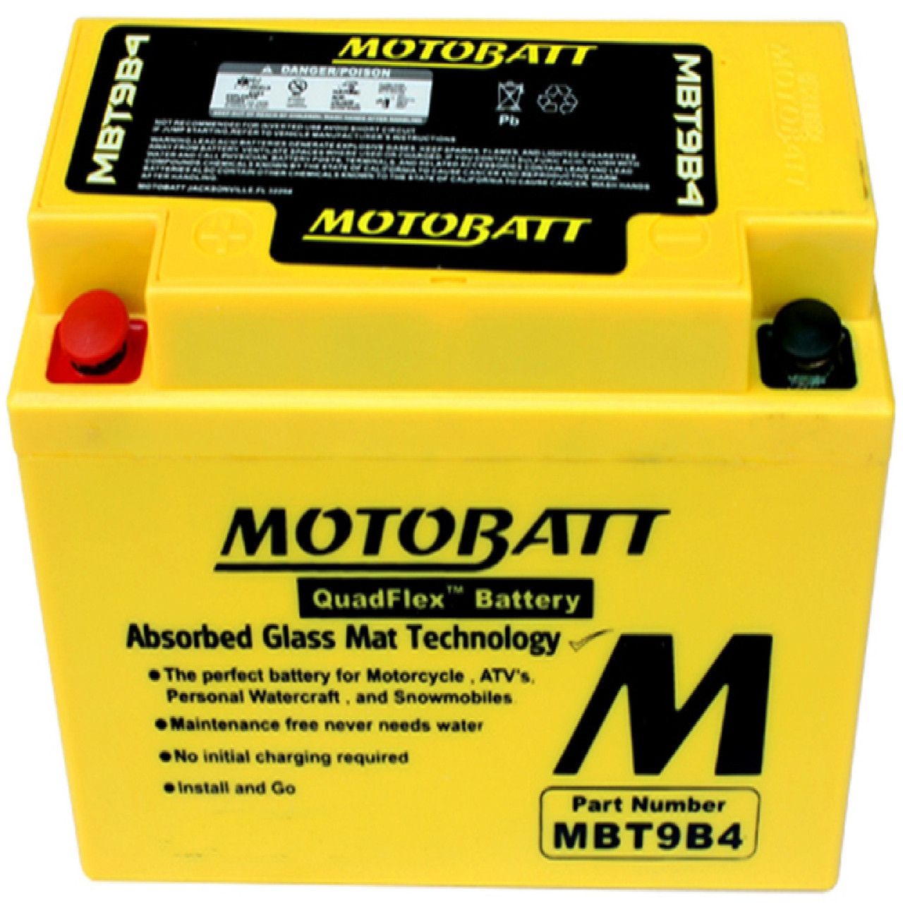 Powersports enthusiasts are all about get-up-and-go action! Motobatt batteries exemplify the powersports lifestyle. Simply install and go. Motobatt batteries without any initial cranking required. Once installed, you don't have to worry about acid leaks or spills because Motobatt batteries come sealed from the factory. You never have to fill or top-off a Motobatt battery.