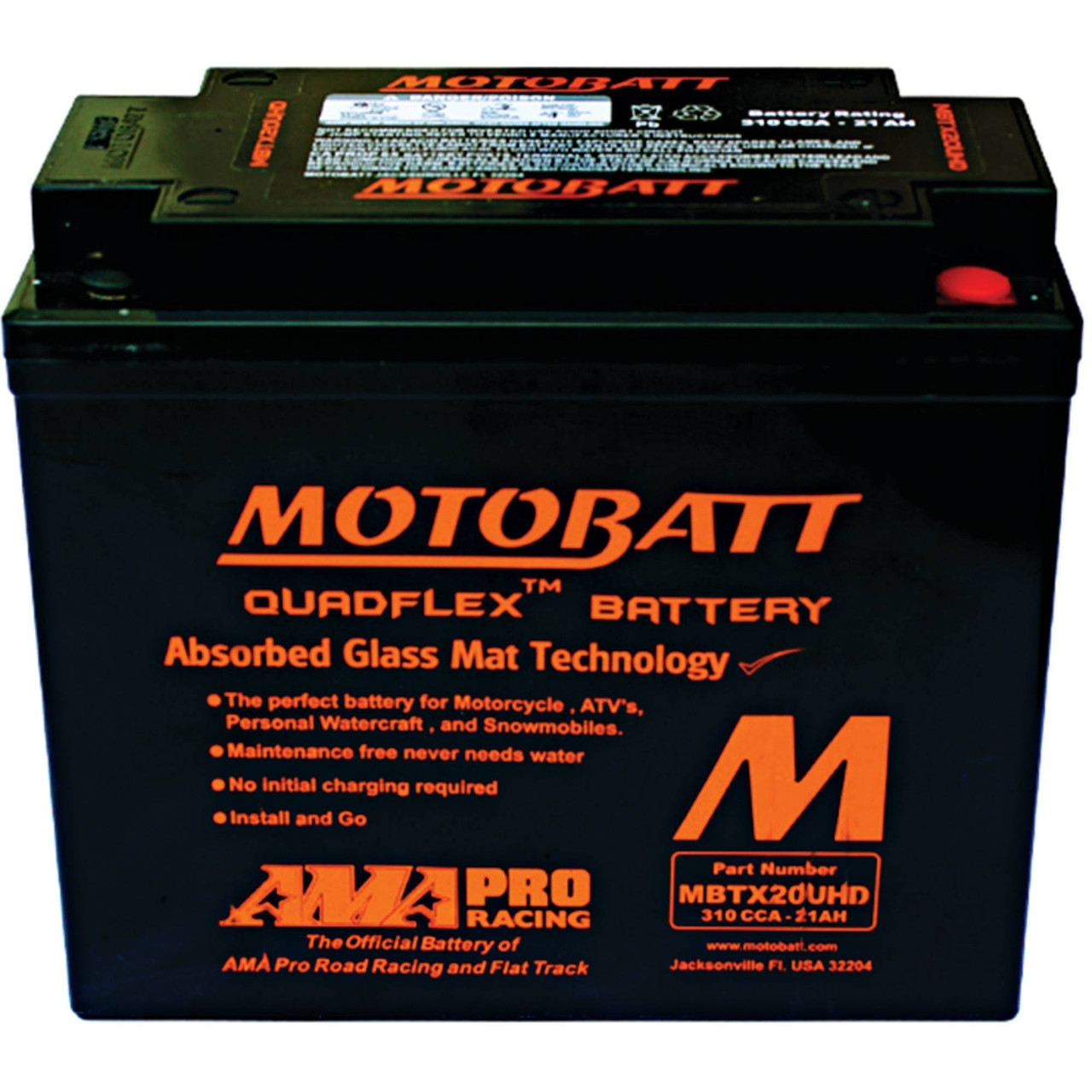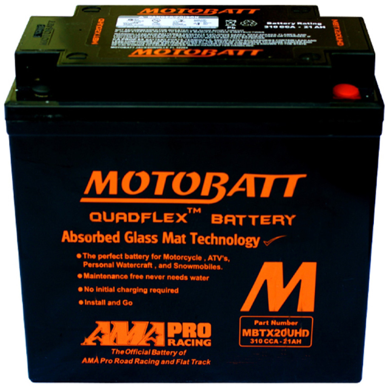 Powersports enthusiasts are all about get-up-and-go action! Motobatt batteries exemplify the powersports lifestyle. Simply install and go. Motobatt batteries without any initial cranking required. Once installed, you don't have to worry about acid leaks or spills because Motobatt batteries come sealed from the factory. You never have to fill or top-off a Motobatt battery.