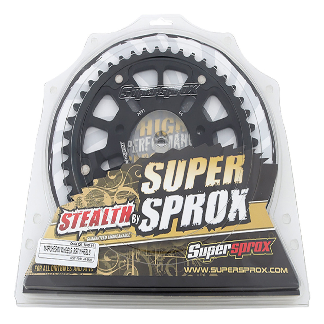 Supersprox - Steel & Aluminum Black Stealth sprocket, 44T, Chain Size 520, RST-7091-44-BLK