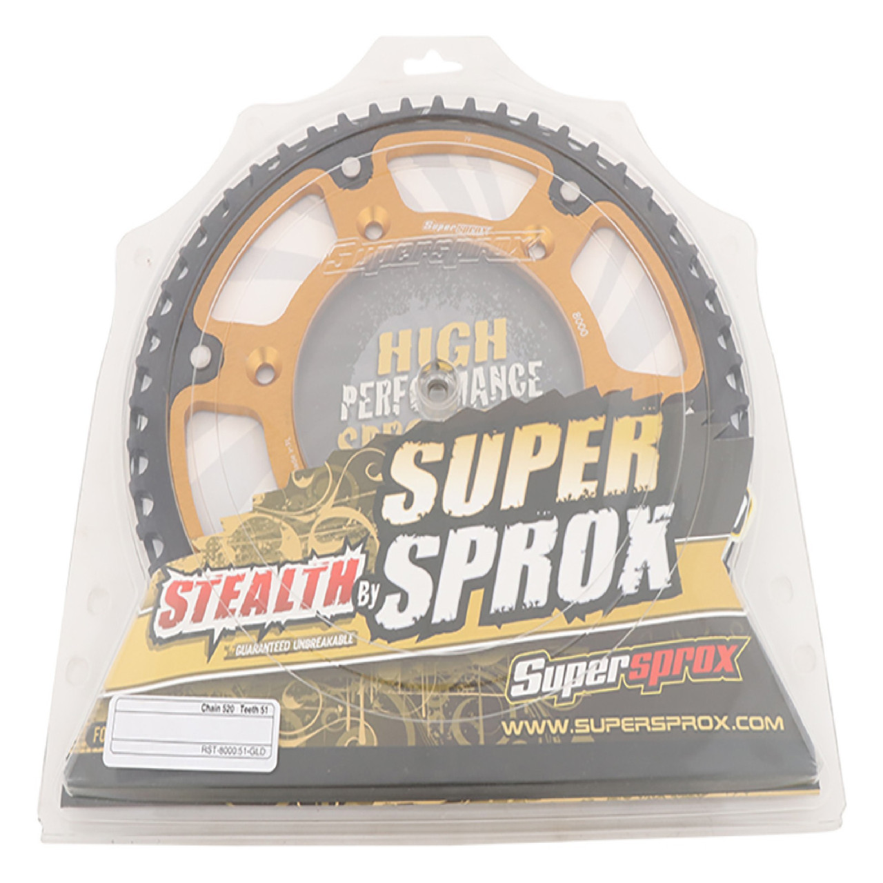 Supersprox - Steel & Aluminum Gold Stealth sprocket, 51T, Chain Size 520, RST-8000-51-GLD