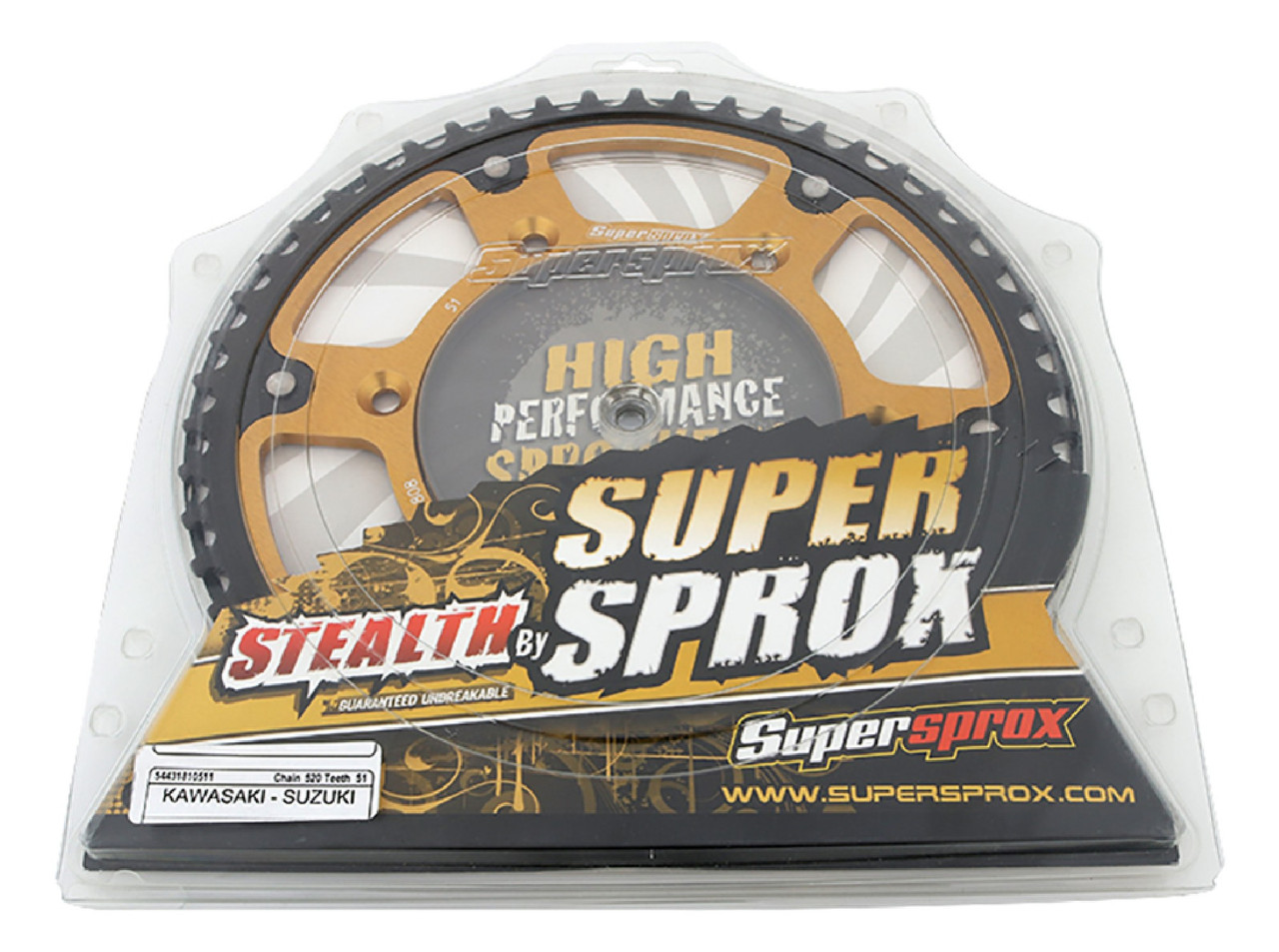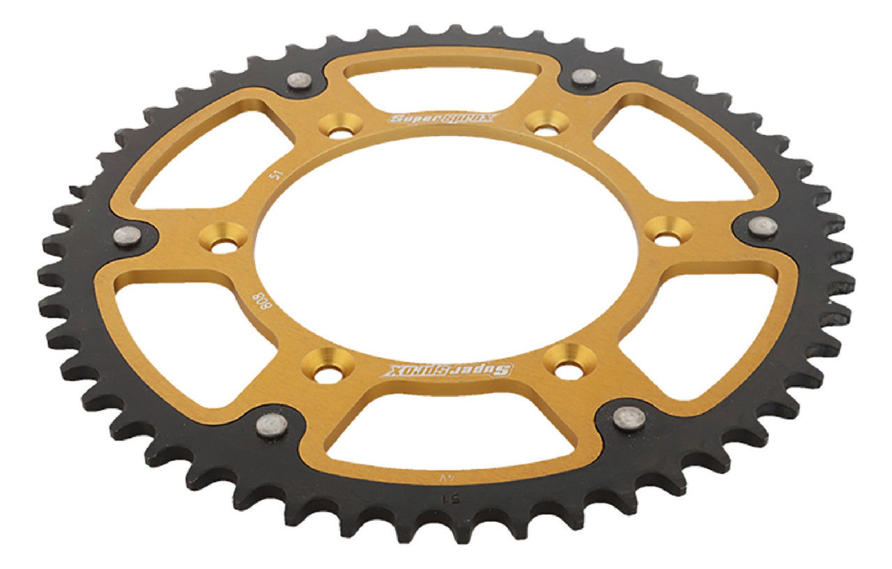 Supersprox - Steel & Aluminum Gold Stealth sprocket, 51T, Chain Size 520, RST-808-51-GLD