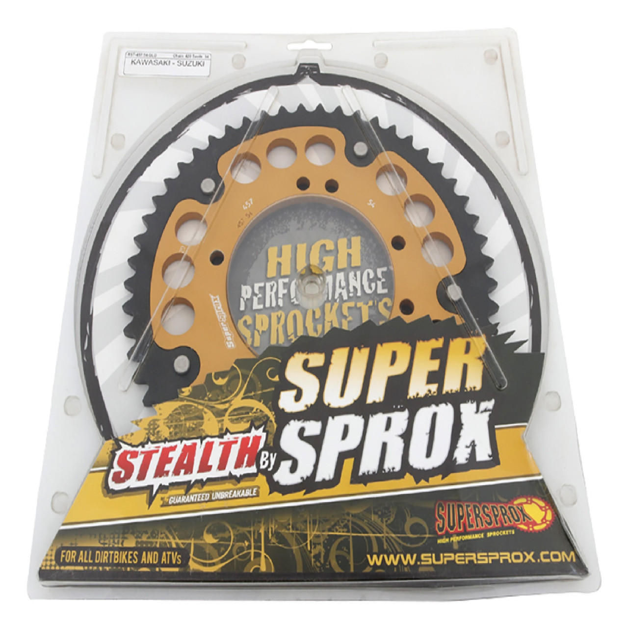 Supersprox - Steel & Aluminum Gold Stealth sprocket, 54T, Chain Size 420, RST-457-54-GLD