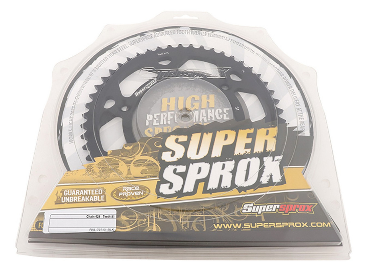 Supersprox Aluminum Sprocket Black 51T-RAL-797-51-BLK for Suzuki DR-Z125 2003-2017