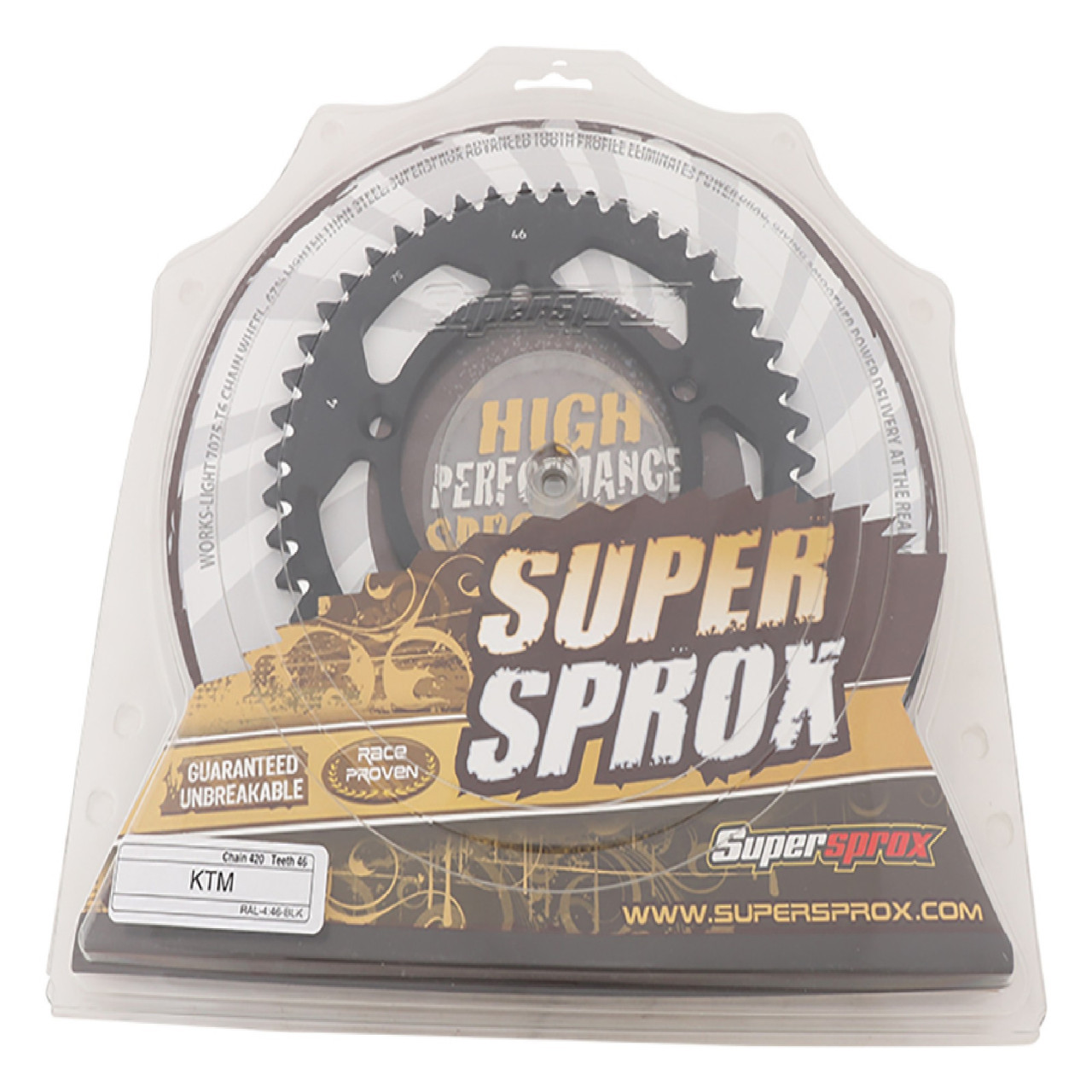 Supersprox Black Aluminum Sprocket, 46T, Chain Size 420, RAL-4-46-BLK